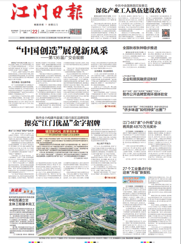 - ② 本网未注明"稿件来源:江门日报"的文/图等稿件均为转载稿,如其他媒体、网站或个人从本网下载使用,必须保留本网注明的"稿件来源",并自负版权等法律责任。