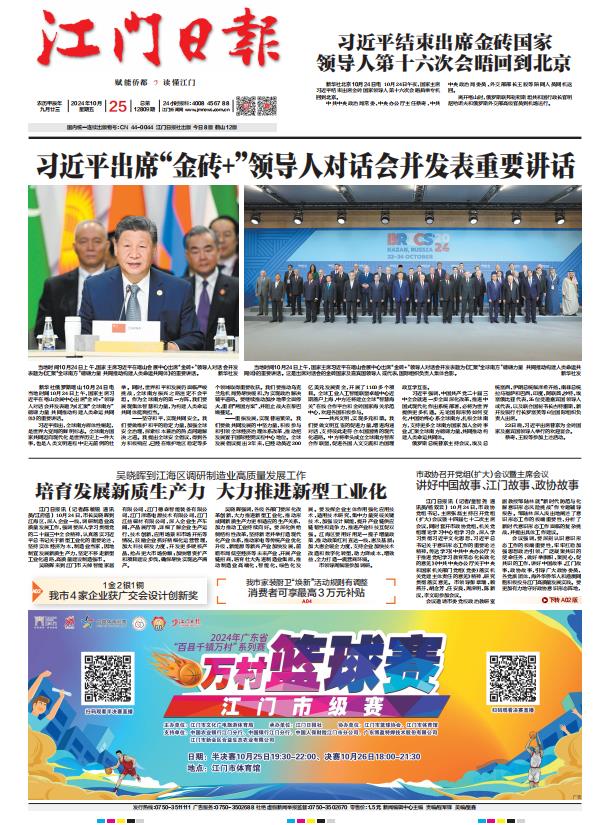 - ① 凡本网注明"稿件来源:江门日报"的所有文字、图片和音视频稿件,版权均属江门日报社所有,任何媒体、网站或个人未经本网协议授权不得复制或转载。已经本网协议授权的媒体、网站,在下载使用时必须注明"稿件来源:江门日报",违者本网将依法追究责任。