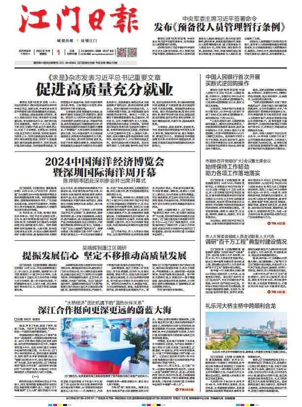 - ① 凡本网注明"稿件来源:江门日报"的所有文字、图片和音视频稿件,版权均属江门日报社所有,任何媒体、网站或个人未经本网协议授权不得复制或转载。已经本网协议授权的媒体、网站,在下载使用时必须注明"稿件来源:江门日报",违者本网将依法追究责任。