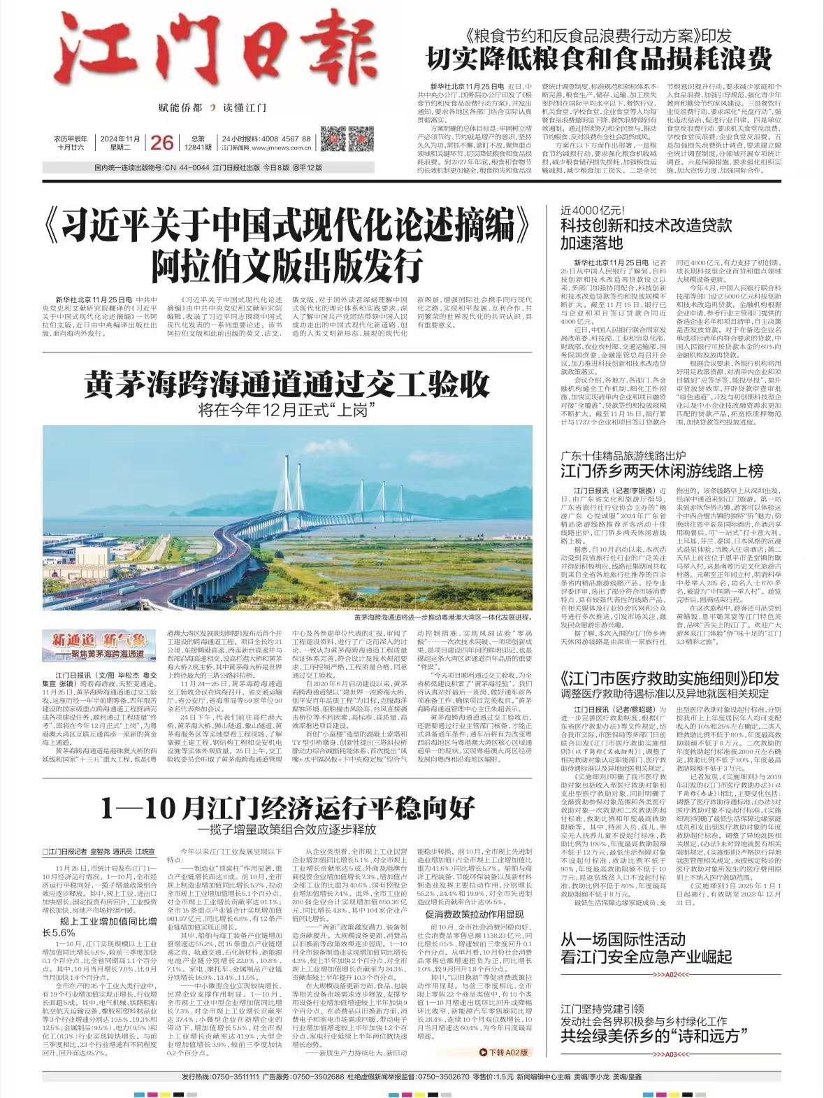 - ① 凡本网注明"稿件来源:江门日报"的所有文字、图片和音视频稿件,版权均属江门日报社所有,任何媒体、网站或个人未经本网协议授权不得复制或转载。已经本网协议授权的媒体、网站,在下载使用时必须注明"稿件来源:江门日报",违者本网将依法追究责任。