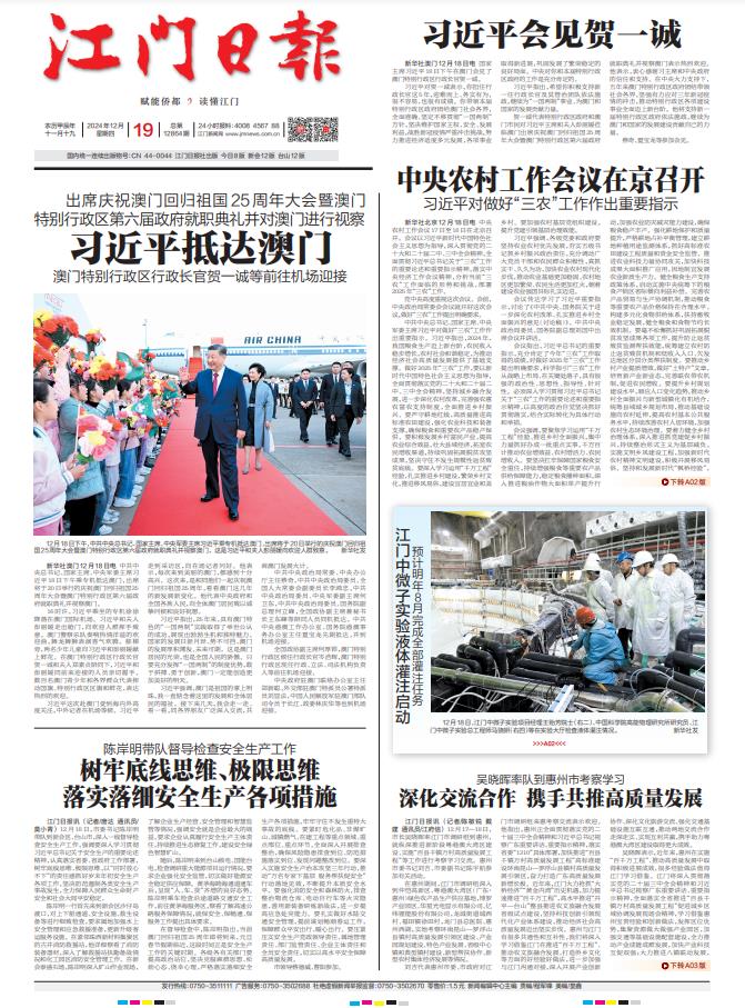 - ② 本网未注明"稿件来源:江门日报"的文/图等稿件均为转载稿,如其他媒体、网站或个人从本网下载使用,必须保留本网注明的"稿件来源",并自负版权等法律责任。