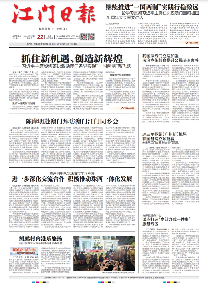 - ② 本网未注明"稿件来源:江门日报"的文/图等稿件均为转载稿,如其他媒体、网站或个人从本网下载使用,必须保留本网注明的"稿件来源",并自负版权等法律责任。