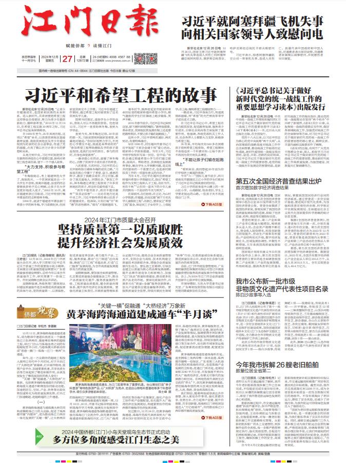 - ② 本网未注明"稿件来源:江门日报"的文/图等稿件均为转载稿,如其他媒体、网站或个人从本网下载使用,必须保留本网注明的"稿件来源",并自负版权等法律责任。
