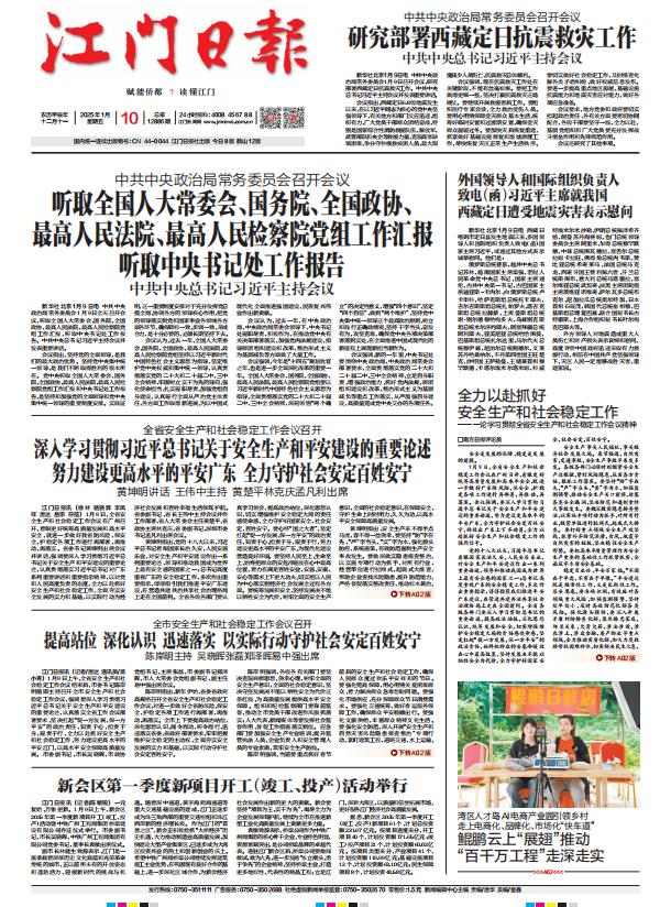 - ① 凡本网注明"稿件来源:江门日报"的所有文字、图片和音视频稿件,版权均属江门日报社所有,任何媒体、网站或个人未经本网协议授权不得复制或转载。已经本网协议授权的媒体、网站,在下载使用时必须注明"稿件来源:江门日报",违者本网将依法追究责任。