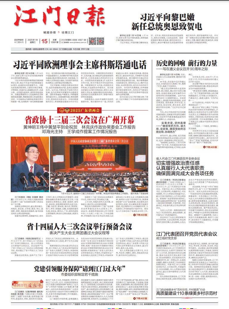 - ① 凡本网注明"稿件来源:江门日报"的所有文字、图片和音视频稿件,版权均属江门日报社所有,任何媒体、网站或个人未经本网协议授权不得复制或转载。已经本网协议授权的媒体、网站,在下载使用时必须注明"稿件来源:江门日报",违者本网将依法追究责任。