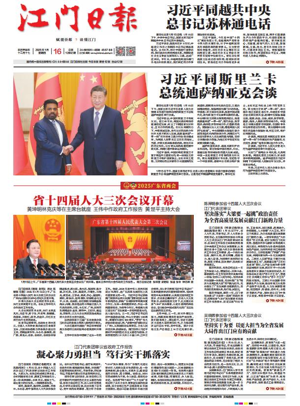 - ① 凡本网注明"稿件来源:江门日报"的所有文字、图片和音视频稿件,版权均属江门日报社所有,任何媒体、网站或个人未经本网协议授权不得复制或转载。已经本网协议授权的媒体、网站,在下载使用时必须注明"稿件来源:江门日报",违者本网将依法追究责任。