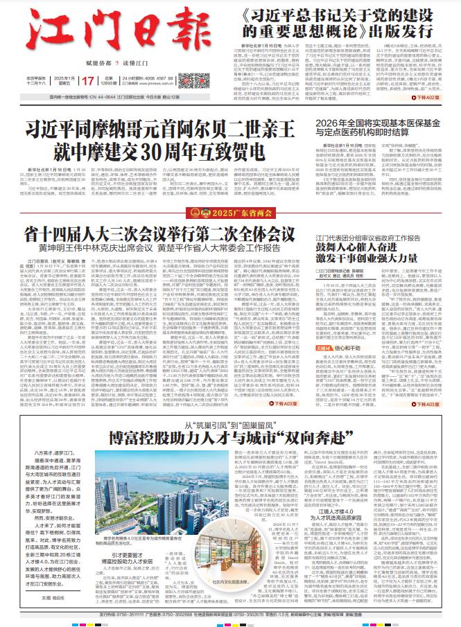 - ② 本网未注明"稿件来源:江门日报"的文/图等稿件均为转载稿,如其他媒体、网站或个人从本网下载使用,必须保留本网注明的"稿件来源",并自负版权等法律责任。
