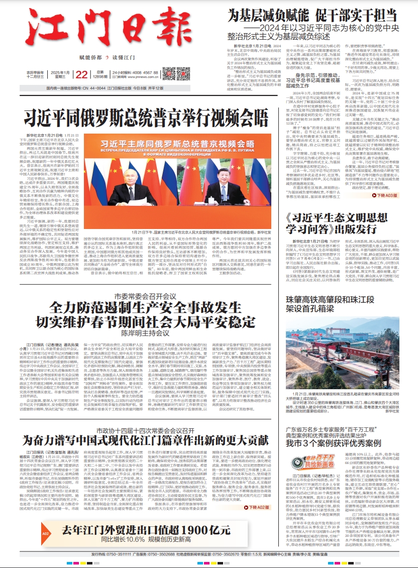 - ① 凡本网注明"稿件来源:江门日报"的所有文字、图片和音视频稿件,版权均属江门日报社所有,任何媒体、网站或个人未经本网协议授权不得复制或转载。已经本网协议授权的媒体、网站,在下载使用时必须注明"稿件来源:江门日报",违者本网将依法追究责任。