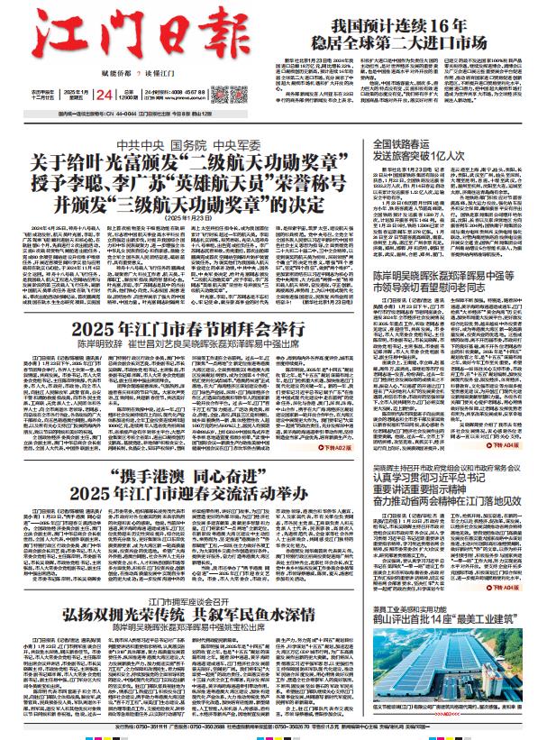 - ② 本网未注明"稿件来源:江门日报"的文/图等稿件均为转载稿,如其他媒体、网站或个人从本网下载使用,必须保留本网注明的"稿件来源",并自负版权等法律责任。