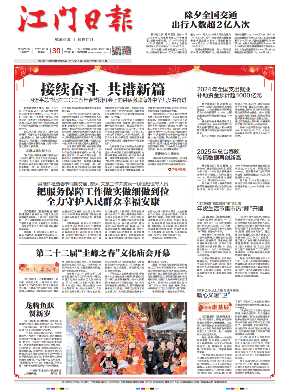 - ② 本网未注明"稿件来源:江门日报"的文/图等稿件均为转载稿,如其他媒体、网站或个人从本网下载使用,必须保留本网注明的"稿件来源",并自负版权等法律责任。