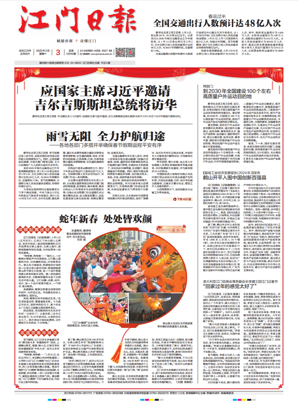- ② 本网未注明"稿件来源:江门日报"的文/图等稿件均为转载稿,如其他媒体、网站或个人从本网下载使用,必须保留本网注明的"稿件来源",并自负版权等法律责任。