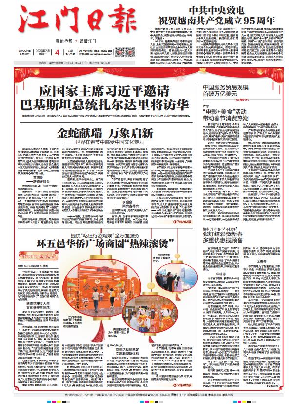 - ① 凡本网注明"稿件来源:江门日报"的所有文字、图片和音视频稿件,版权均属江门日报社所有,任何媒体、网站或个人未经本网协议授权不得复制或转载。已经本网协议授权的媒体、网站,在下载使用时必须注明"稿件来源:江门日报",违者本网将依法追究责任。