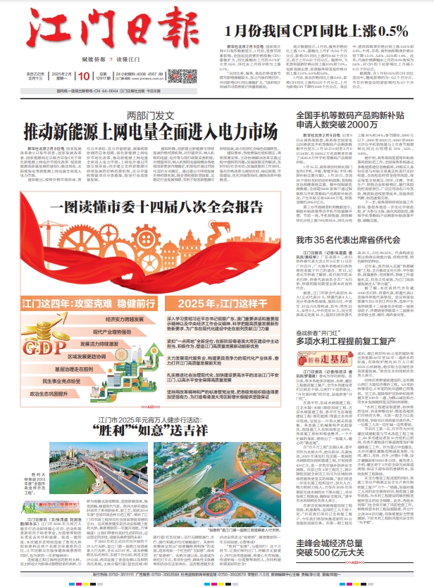 - ① 凡本网注明"稿件来源:江门日报"的所有文字、图片和音视频稿件,版权均属江门日报社所有,任何媒体、网站或个人未经本网协议授权不得复制或转载。已经本网协议授权的媒体、网站,在下载使用时必须注明"稿件来源:江门日报",违者本网将依法追究责任。