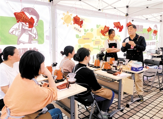 ▲咖啡节设置“即学职会 秒懂咖啡”展位,提供咖啡冲调技能提升培训。