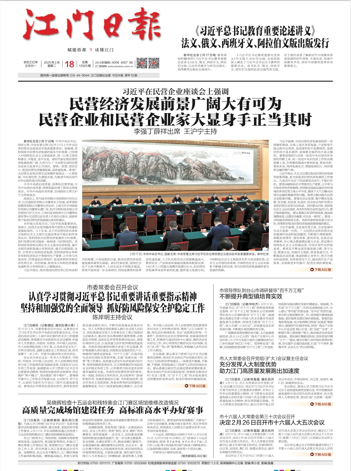 - ① 凡本网注明"稿件来源:江门日报"的所有文字、图片和音视频稿件,版权均属江门日报社所有,任何媒体、网站或个人未经本网协议授权不得复制或转载。已经本网协议授权的媒体、网站,在下载使用时必须注明"稿件来源:江门日报",违者本网将依法追究责任。