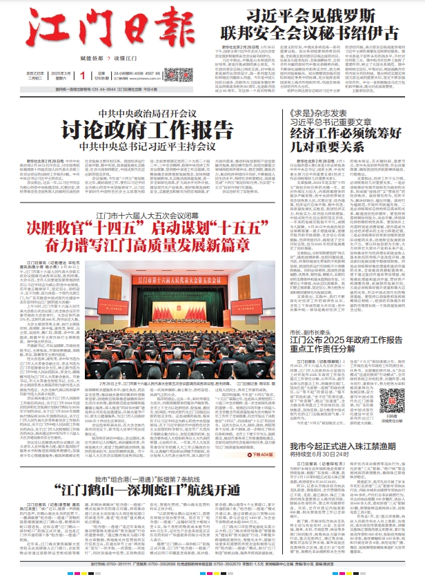 - ② 本网未注明"稿件来源:江门日报"的文/图等稿件均为转载稿,如其他媒体、网站或个人从本网下载使用,必须保留本网注明的"稿件来源",并自负版权等法律责任。