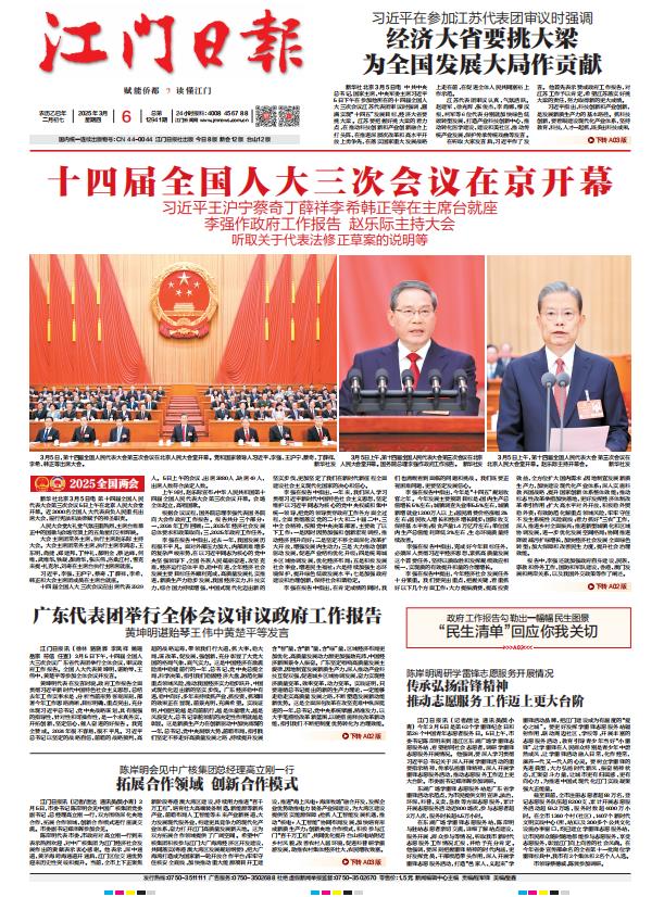 - ② 本网未注明"稿件来源:江门日报"的文/图等稿件均为转载稿,如其他媒体、网站或个人从本网下载使用,必须保留本网注明的"稿件来源",并自负版权等法律责任。