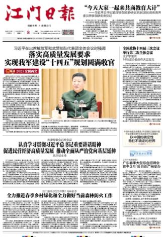 - ① 凡本网注明"稿件来源:江门日报"的所有文字、图片和音视频稿件,版权均属江门日报社所有,任何媒体、网站或个人未经本网协议授权不得复制或转载。已经本网协议授权的媒体、网站,在下载使用时必须注明"稿件来源:江门日报",违者本网将依法追究责任。