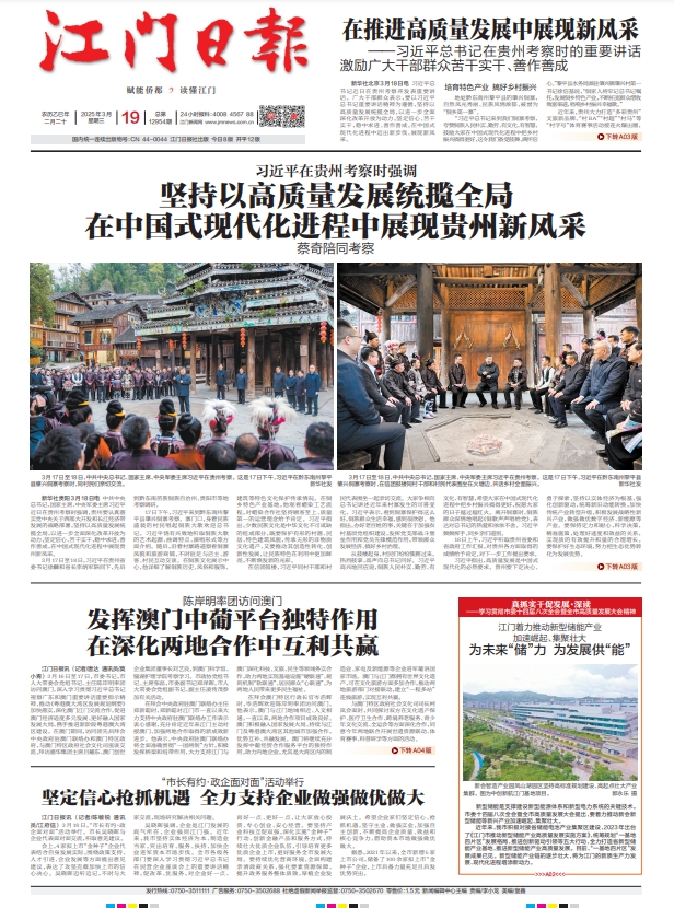 - ② 本网未注明"稿件来源:江门日报"的文/图等稿件均为转载稿,如其他媒体、网站或个人从本网下载使用,必须保留本网注明的"稿件来源",并自负版权等法律责任。
