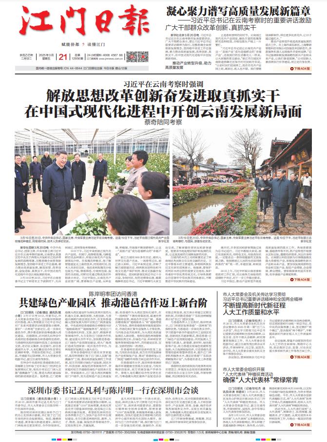 - ① 凡本网注明"稿件来源:江门日报"的所有文字、图片和音视频稿件,版权均属江门日报社所有,任何媒体、网站或个人未经本网协议授权不得复制或转载。已经本网协议授权的媒体、网站,在下载使用时必须注明"稿件来源:江门日报",违者本网将依法追究责任。