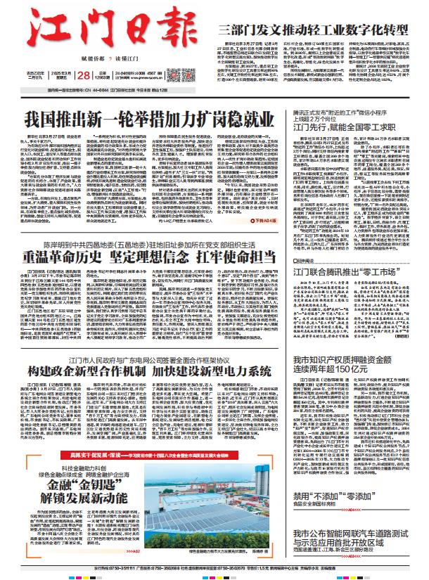- ② 本网未注明"稿件来源:江门日报"的文/图等稿件均为转载稿,如其他媒体、网站或个人从本网下载使用,必须保留本网注明的"稿件来源",并自负版权等法律责任。