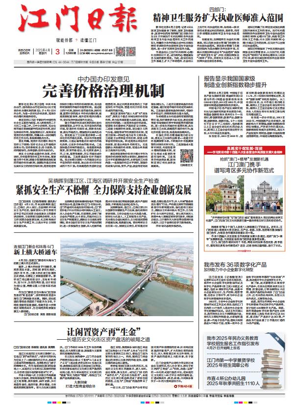 - ① 凡本网注明"稿件来源:江门日报"的所有文字、图片和音视频稿件,版权均属江门日报社所有,任何媒体、网站或个人未经本网协议授权不得复制或转载。已经本网协议授权的媒体、网站,在下载使用时必须注明"稿件来源:江门日报",违者本网将依法追究责任。