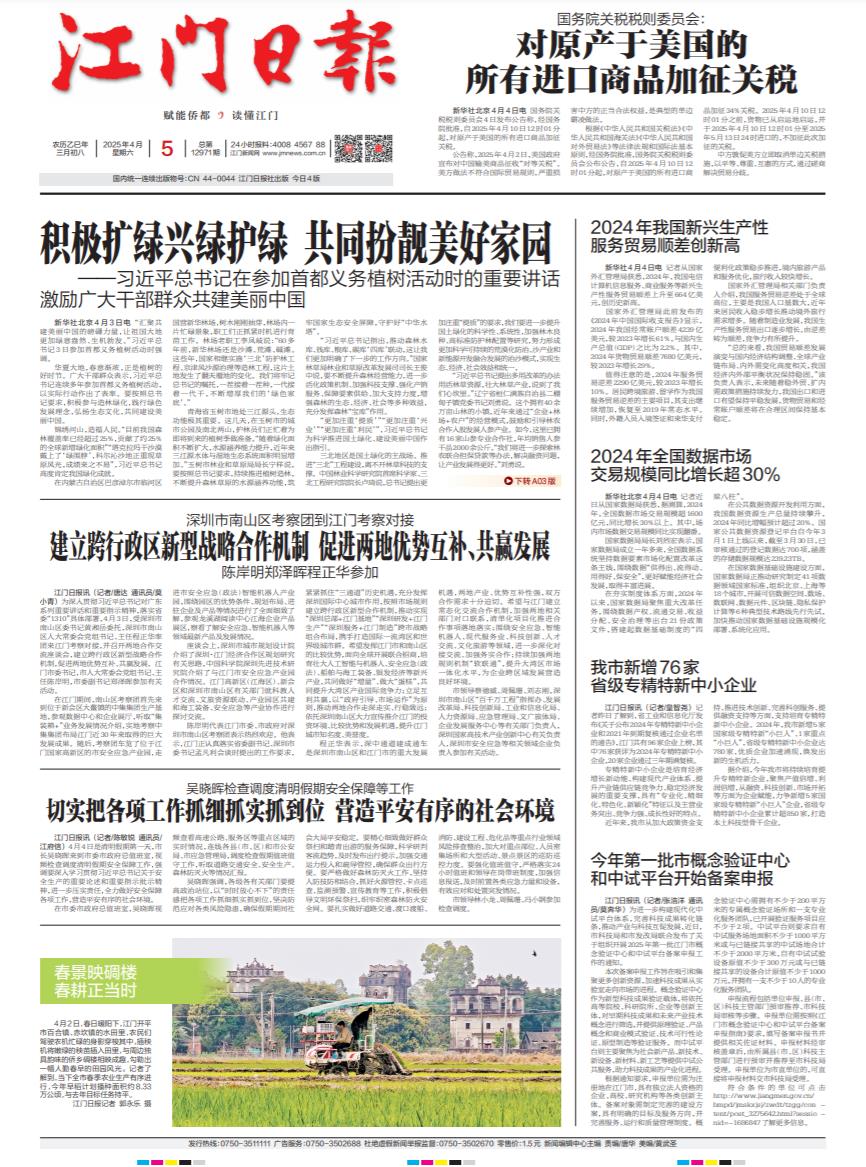 - ① 凡本网注明"稿件来源:江门日报"的所有文字、图片和音视频稿件,版权均属江门日报社所有,任何媒体、网站或个人未经本网协议授权不得复制或转载。已经本网协议授权的媒体、网站,在下载使用时必须注明"稿件来源:江门日报",违者本网将依法追究责任。