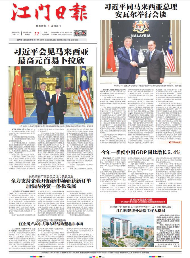 - ① 凡本网注明"稿件来源:江门日报"的所有文字、图片和音视频稿件,版权均属江门日报社所有,任何媒体、网站或个人未经本网协议授权不得复制或转载。已经本网协议授权的媒体、网站,在下载使用时必须注明"稿件来源:江门日报",违者本网将依法追究责任。