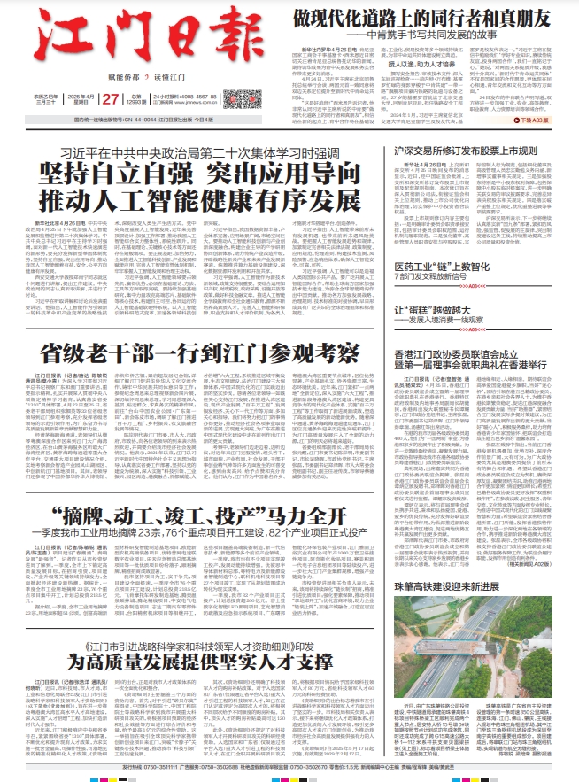 - ① 凡本网注明"稿件来源:江门日报"的所有文字、图片和音视频稿件,版权均属江门日报社所有,任何媒体、网站或个人未经本网协议授权不得复制或转载。已经本网协议授权的媒体、网站,在下载使用时必须注明"稿件来源:江门日报",违者本网将依法追究责任。