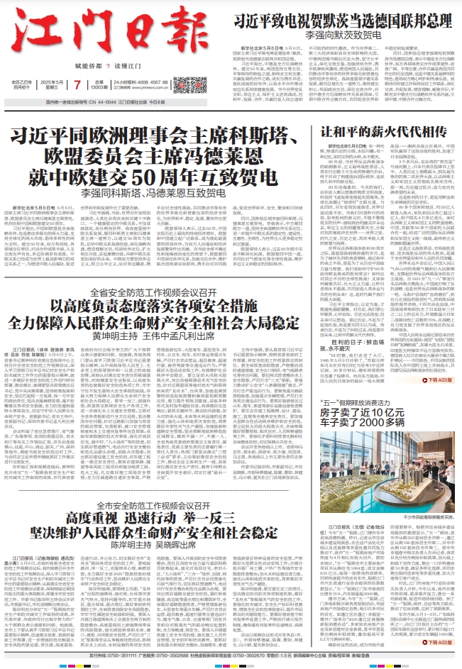 - ① 凡本网注明"稿件来源:江门日报"的所有文字、图片和音视频稿件,版权均属江门日报社所有,任何媒体、网站或个人未经本网协议授权不得复制或转载。已经本网协议授权的媒体、网站,在下载使用时必须注明"稿件来源:江门日报",违者本网将依法追究责任。
