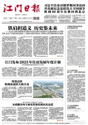 - ① 凡本网注明"稿件来源:江门日报"的所有文字、图片和音视频稿件,版权均属江门日报社所有,任何媒体、网站或个人未经本网协议授权不得复制或转载。已经本网协议授权的媒体、网站,在下载使用时必须注明"稿件来源:江门日报",违者本网将依法追究责任。