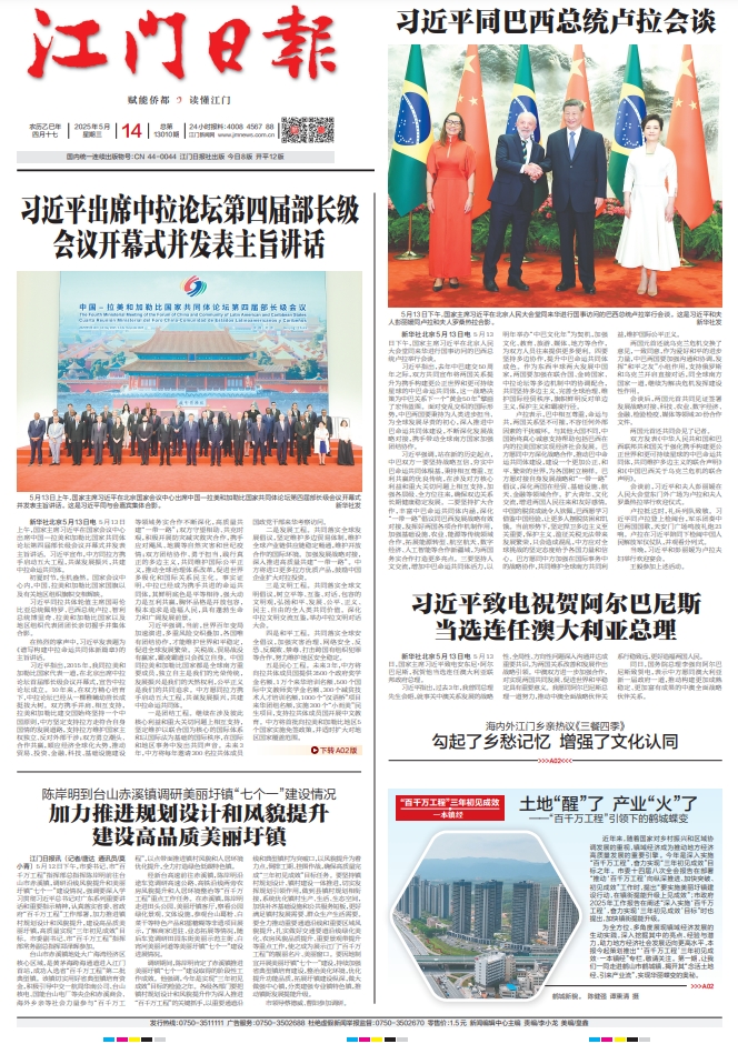 - ① 凡本网注明"稿件来源:江门日报"的所有文字、图片和音视频稿件,版权均属江门日报社所有,任何媒体、网站或个人未经本网协议授权不得复制或转载。已经本网协议授权的媒体、网站,在下载使用时必须注明"稿件来源:江门日报",违者本网将依法追究责任。