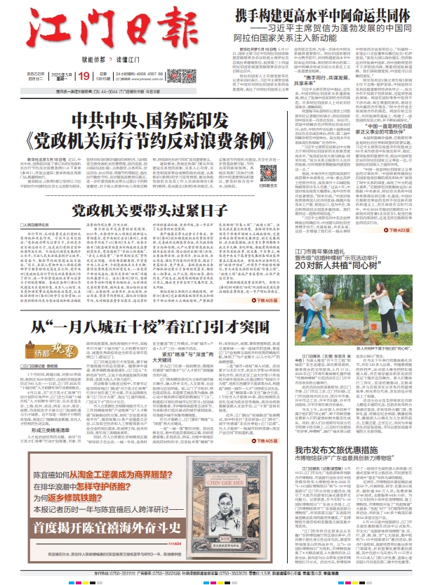 - ② 本网未注明"稿件来源:江门日报"的文/图等稿件均为转载稿,如其他媒体、网站或个人从本网下载使用,必须保留本网注明的"稿件来源",并自负版权等法律责任。