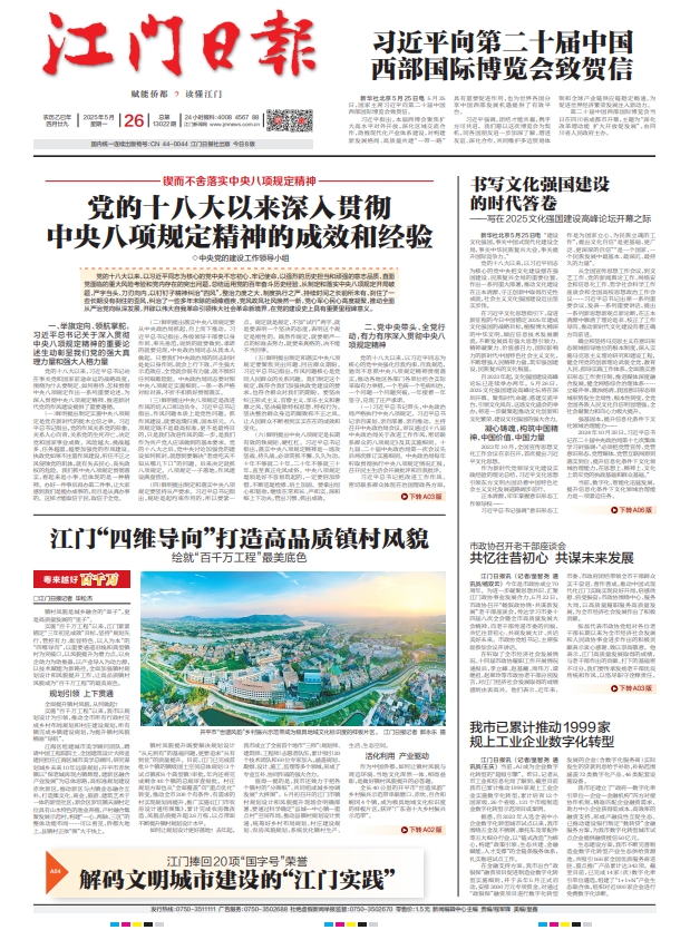 - ① 凡本网注明"稿件来源:江门日报"的所有文字、图片和音视频稿件,版权均属江门日报社所有,任何媒体、网站或个人未经本网协议授权不得复制或转载。已经本网协议授权的媒体、网站,在下载使用时必须注明"稿件来源:江门日报",违者本网将依法追究责任。