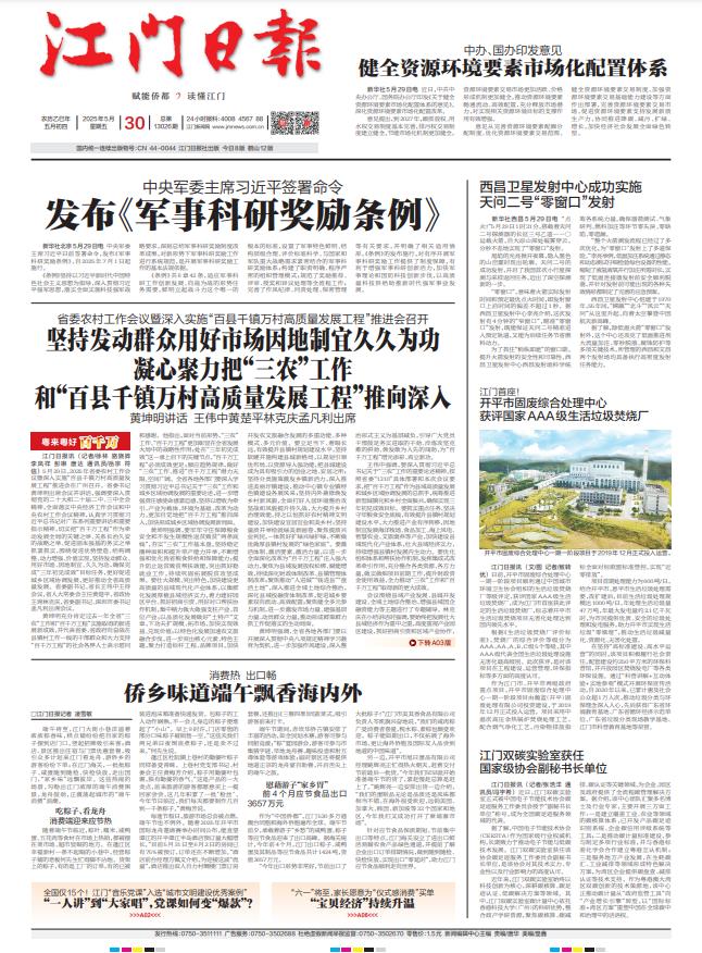 - ② 本网未注明"稿件来源:江门日报"的文/图等稿件均为转载稿,如其他媒体、网站或个人从本网下载使用,必须保留本网注明的"稿件来源",并自负版权等法律责任。