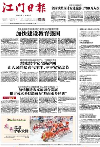 - ① 凡本网注明"稿件来源:江门日报"的所有文字、图片和音视频稿件,版权均属江门日报社所有,任何媒体、网站或个人未经本网协议授权不得复制或转载。已经本网协议授权的媒体、网站,在下载使用时必须注明"稿件来源:江门日报",违者本网将依法追究责任。