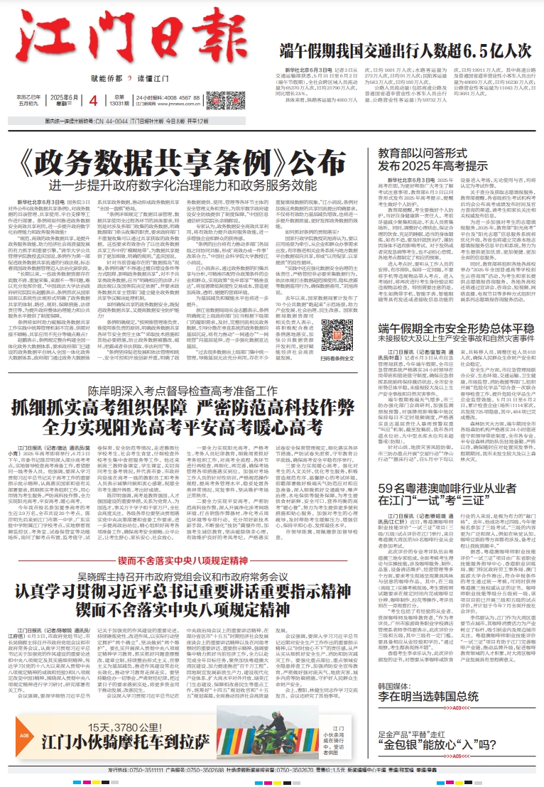 - ① 凡本网注明"稿件来源:江门日报"的所有文字、图片和音视频稿件,版权均属江门日报社所有,任何媒体、网站或个人未经本网协议授权不得复制或转载。已经本网协议授权的媒体、网站,在下载使用时必须注明"稿件来源:江门日报",违者本网将依法追究责任。