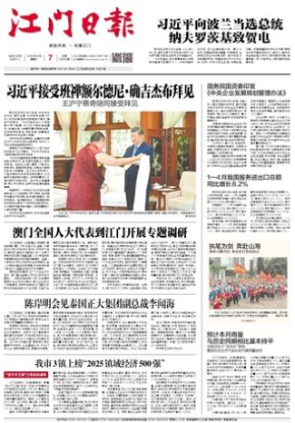 - ① 凡本网注明"稿件来源:江门日报"的所有文字、图片和音视频稿件,版权均属江门日报社所有,任何媒体、网站或个人未经本网协议授权不得复制或转载。已经本网协议授权的媒体、网站,在下载使用时必须注明"稿件来源:江门日报",违者本网将依法追究责任。