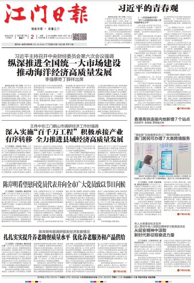 - ② 本网未注明"稿件来源:江门日报"的文/图等稿件均为转载稿,如其他媒体、网站或个人从本网下载使用,必须保留本网注明的"稿件来源",并自负版权等法律责任。