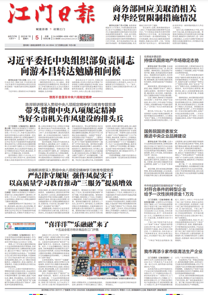 - ① 凡本网注明"稿件来源:江门日报"的所有文字、图片和音视频稿件,版权均属江门日报社所有,任何媒体、网站或个人未经本网协议授权不得复制或转载。已经本网协议授权的媒体、网站,在下载使用时必须注明"稿件来源:江门日报",违者本网将依法追究责任。