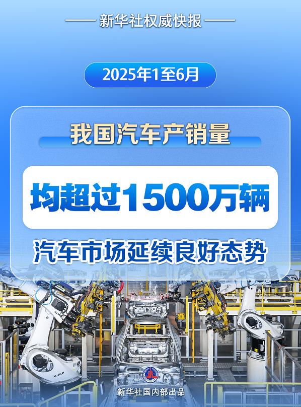 新华社北京7月10日电(记者唐诗凝)中国汽车工业协会10日发布的数据显示,2025年上半年我国汽车产销量首次双超1500万辆,均同比实现两位数增长,汽车产业活力持续释放。