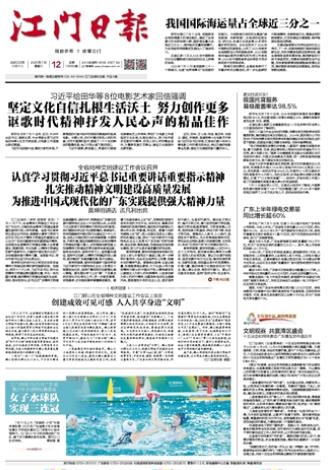- ① 凡本网注明"稿件来源:江门日报"的所有文字、图片和音视频稿件,版权均属江门日报社所有,任何媒体、网站或个人未经本网协议授权不得复制或转载。已经本网协议授权的媒体、网站,在下载使用时必须注明"稿件来源:江门日报",违者本网将依法追究责任。
