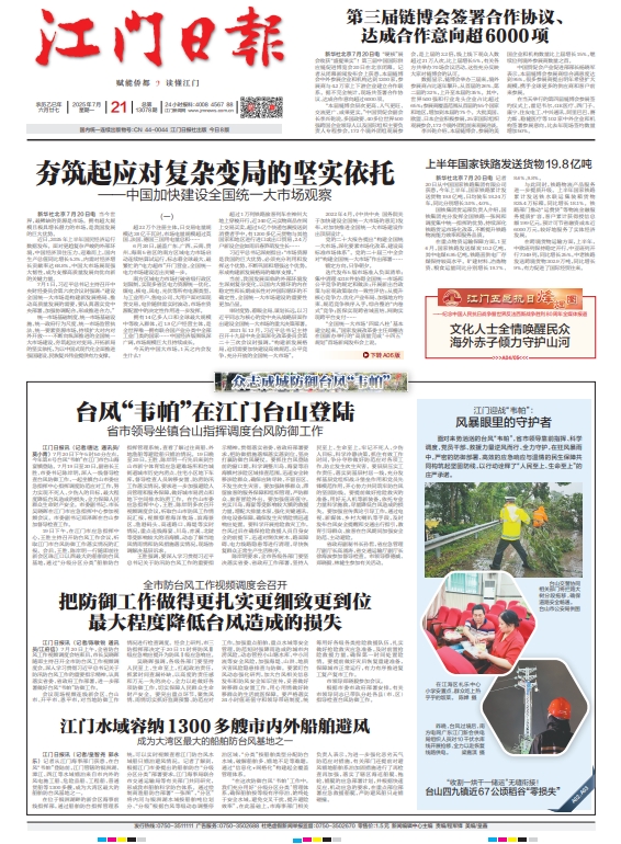- ② 本网未注明"稿件来源:江门日报"的文/图等稿件均为转载稿,如其他媒体、网站或个人从本网下载使用,必须保留本网注明的"稿件来源",并自负版权等法律责任。