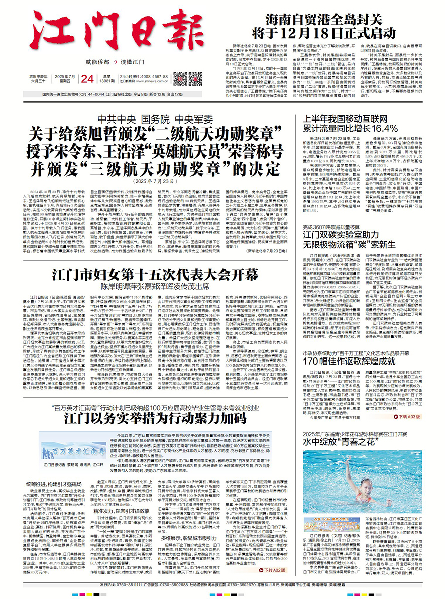 - ② 本网未注明"稿件来源:江门日报"的文/图等稿件均为转载稿,如其他媒体、网站或个人从本网下载使用,必须保留本网注明的"稿件来源",并自负版权等法律责任。