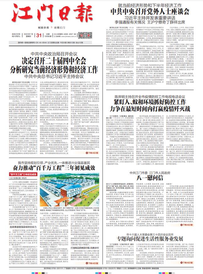 - ① 凡本网注明"稿件来源:江门日报"的所有文字、图片和音视频稿件,版权均属江门日报社所有,任何媒体、网站或个人未经本网协议授权不得复制或转载。已经本网协议授权的媒体、网站,在下载使用时必须注明"稿件来源:江门日报",违者本网将依法追究责任。