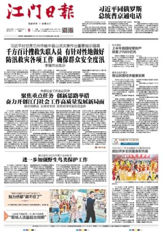 - ① 凡本网注明"稿件来源:江门日报"的所有文字、图片和音视频稿件,版权均属江门日报社所有,任何媒体、网站或个人未经本网协议授权不得复制或转载。已经本网协议授权的媒体、网站,在下载使用时必须注明"稿件来源:江门日报",违者本网将依法追究责任。