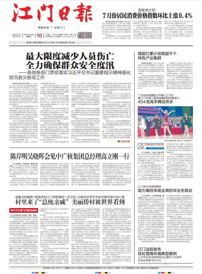 - ① 凡本网注明"稿件来源:江门日报"的所有文字、图片和音视频稿件,版权均属江门日报社所有,任何媒体、网站或个人未经本网协议授权不得复制或转载。已经本网协议授权的媒体、网站,在下载使用时必须注明"稿件来源:江门日报",违者本网将依法追究责任。