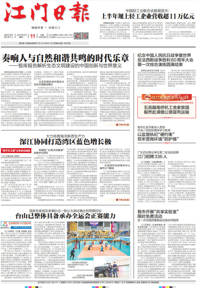 - ② 本网未注明"稿件来源:江门日报"的文/图等稿件均为转载稿,如其他媒体、网站或个人从本网下载使用,必须保留本网注明的"稿件来源",并自负版权等法律责任。