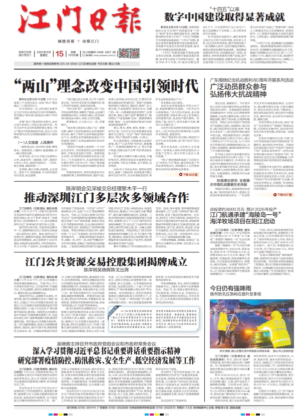 - ① 凡本网注明"稿件来源:江门日报"的所有文字、图片和音视频稿件,版权均属江门日报社所有,任何媒体、网站或个人未经本网协议授权不得复制或转载。已经本网协议授权的媒体、网站,在下载使用时必须注明"稿件来源:江门日报",违者本网将依法追究责任。