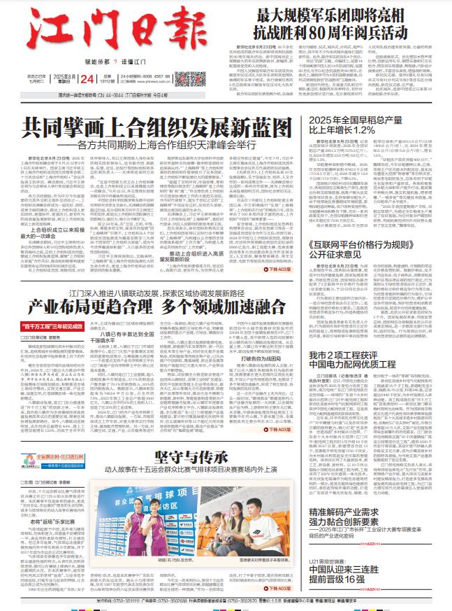 - ① 凡本网注明"稿件来源:江门日报"的所有文字、图片和音视频稿件,版权均属江门日报社所有,任何媒体、网站或个人未经本网协议授权不得复制或转载。已经本网协议授权的媒体、网站,在下载使用时必须注明"稿件来源:江门日报",违者本网将依法追究责任。